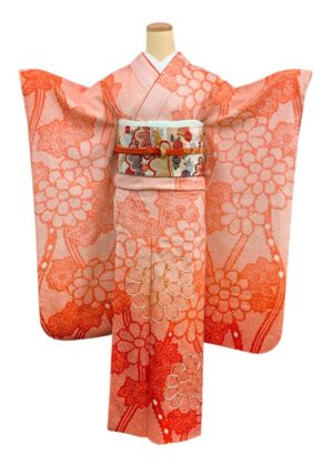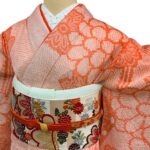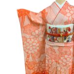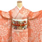 【サイズ】 身丈:155cm(背から) 袖丈:101.5cm 裄丈:65.5cm 帯長さ:426㎝ 帯幅:31㎝ 適応身長:158㎝くらいまで
