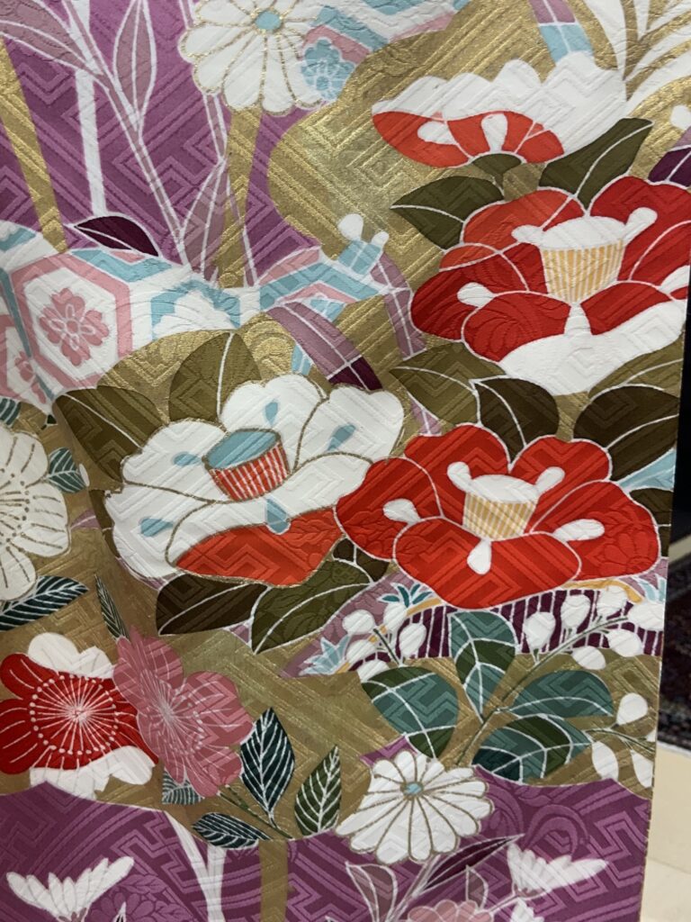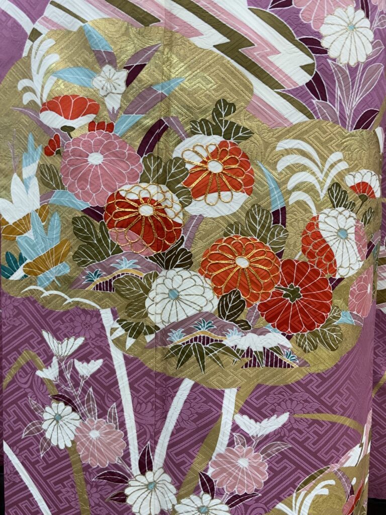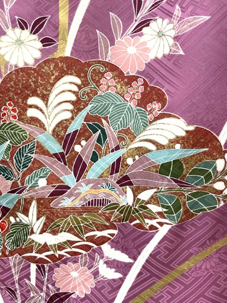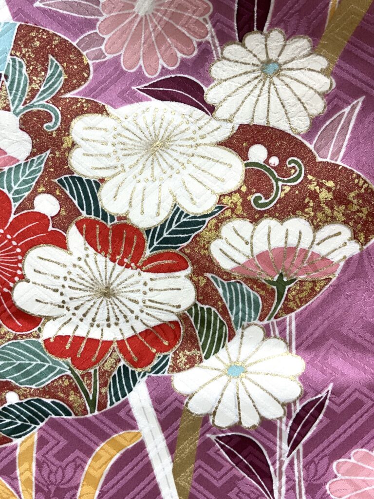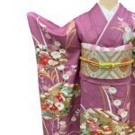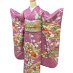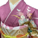 やわらかな青みがかったピンクに、 四季の花々が織りなす優美な世界。 地紋には格式高い亀甲文様が織り込まれ、 品格と華やかさを併せ持つ一着です。 草花や御所車、貝桶など古典文様が描かれ、 成人式はもちろん、格式ある式典にもふさわしい振袖です。 帯や小物の組み合わせで、 可愛らしくも凛とした雰囲気にも仕上がります。