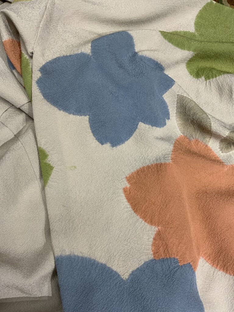 クリーニング済みです。 数回使用の美品 最後の画像、左袖前部分 染色汚れ?わずかにあります。 帯 ★★★☆☆ Cランク