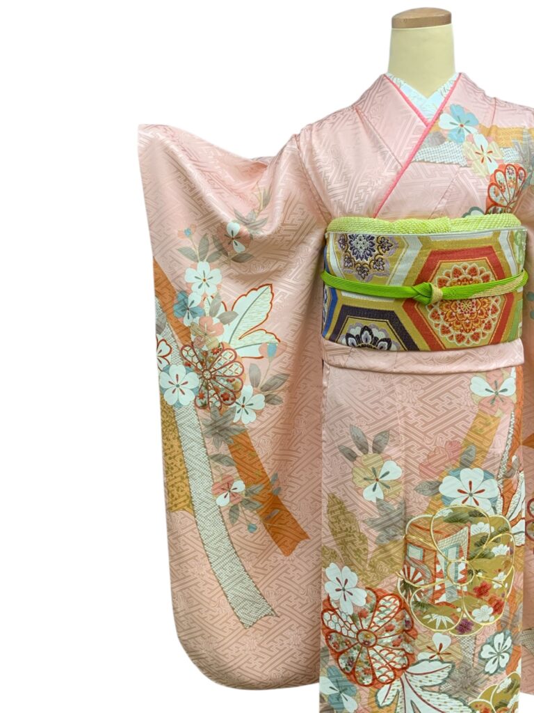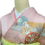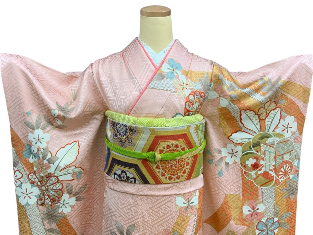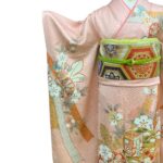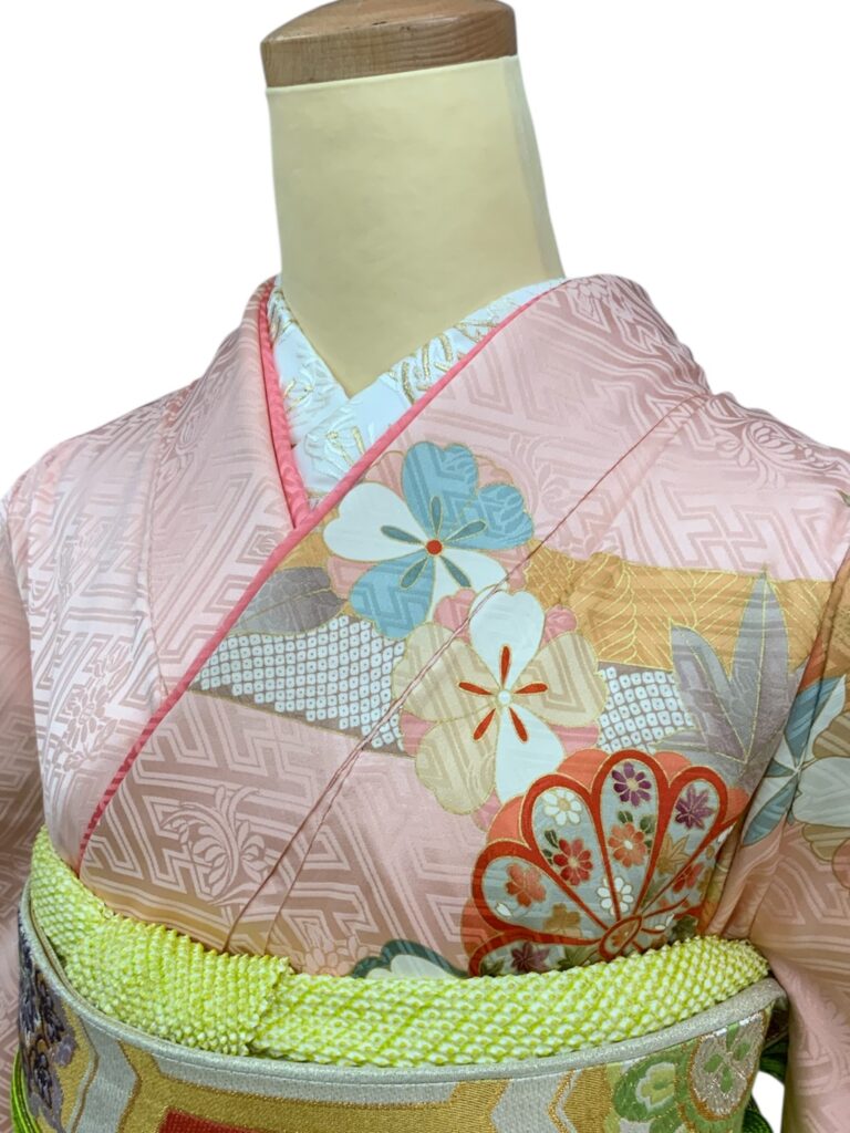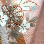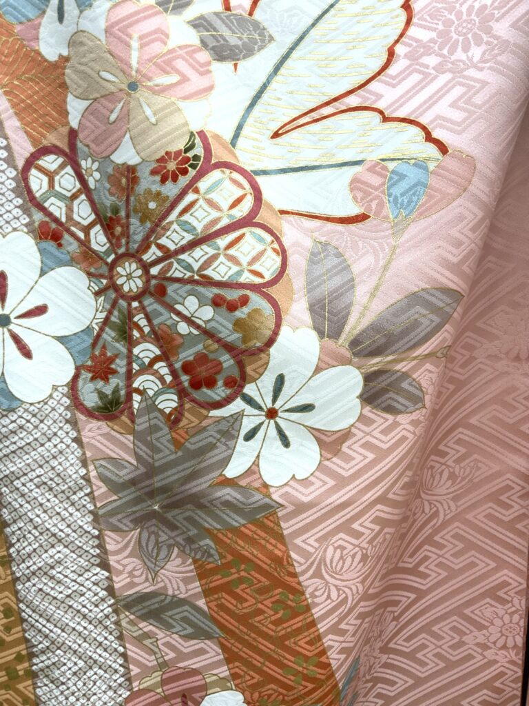 淡いピンク地に上品な地紋を織り出し、