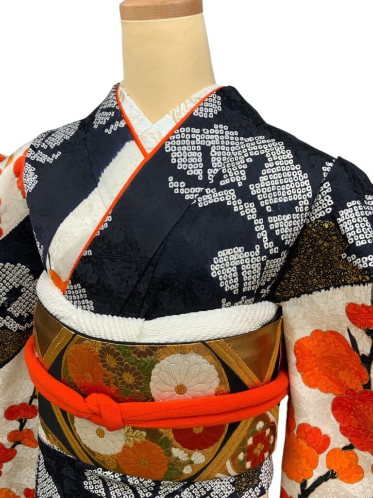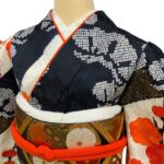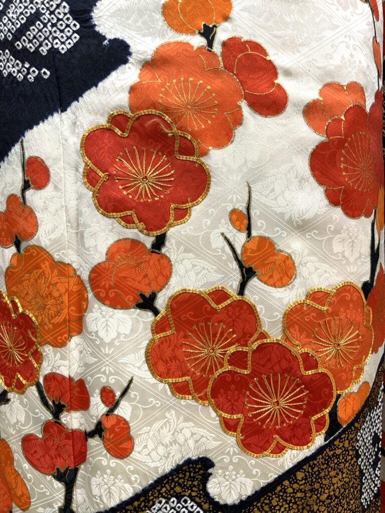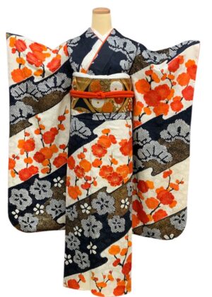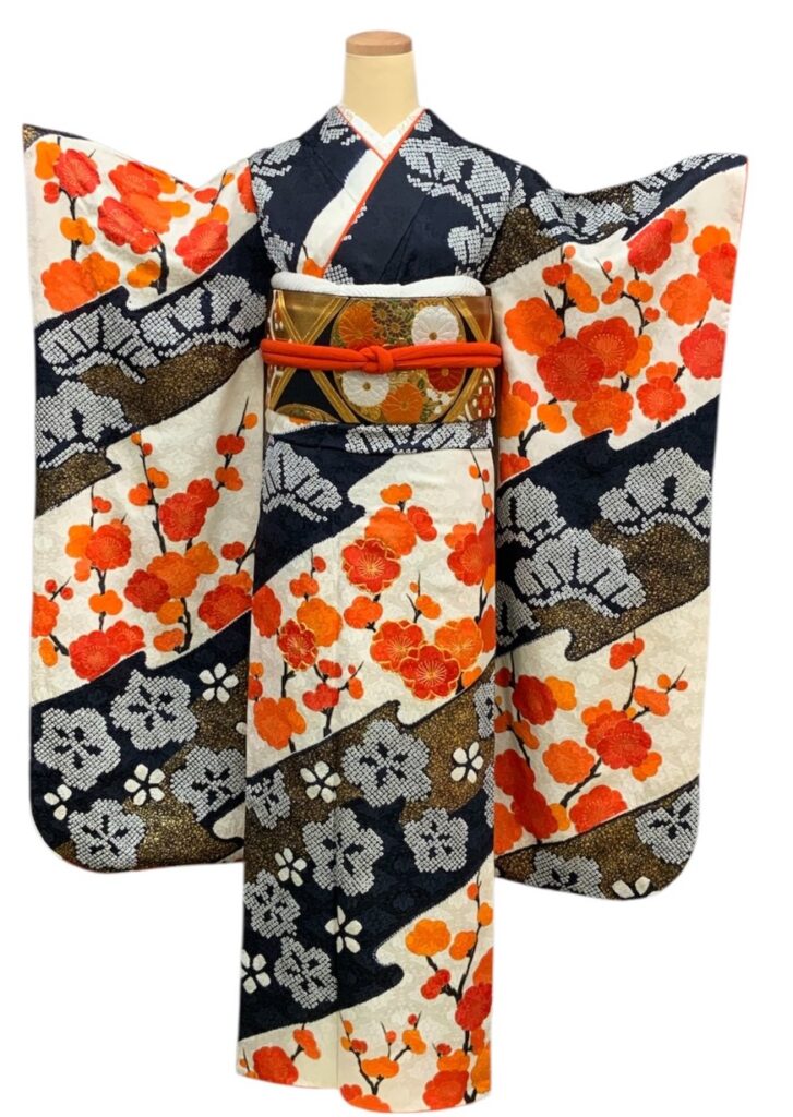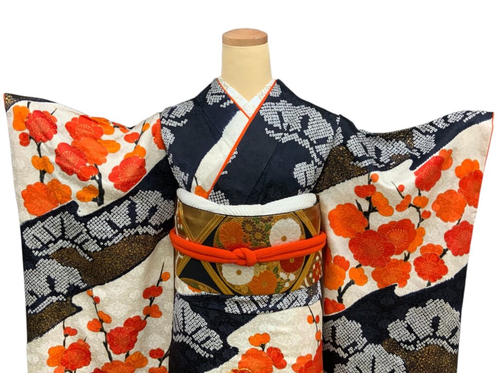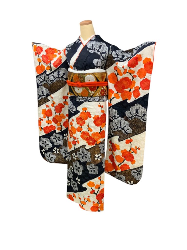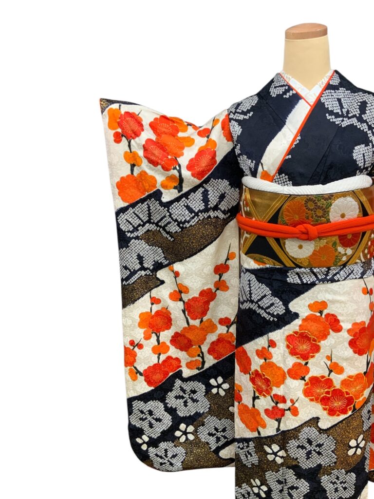 豊かに咲き誇る梅花が華やぎを添える振袖です。