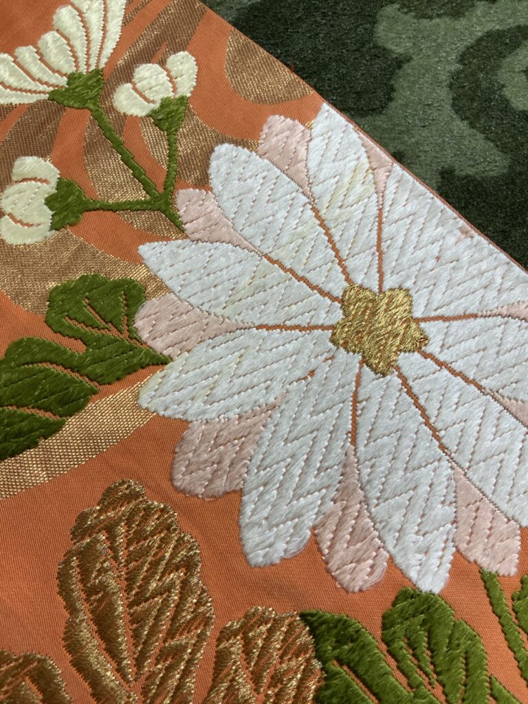 帯 ★★★☆☆ Cランク 唐織りの糸の飛び出し、わずかな毛羽立ち少しあります。