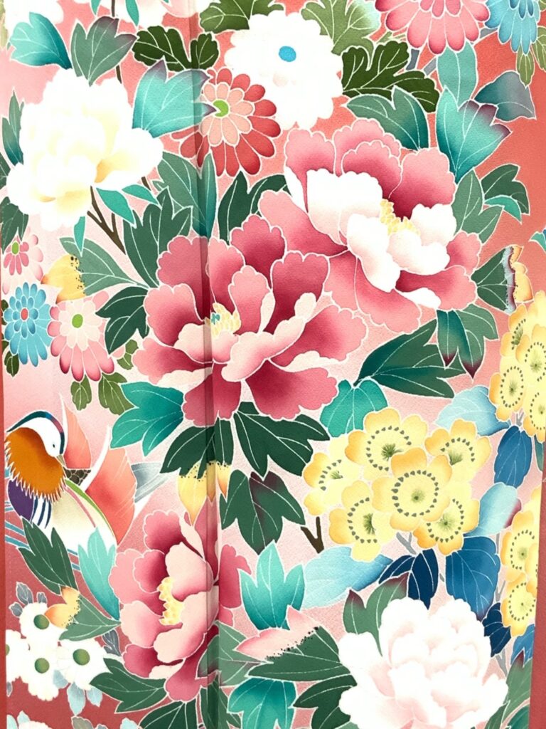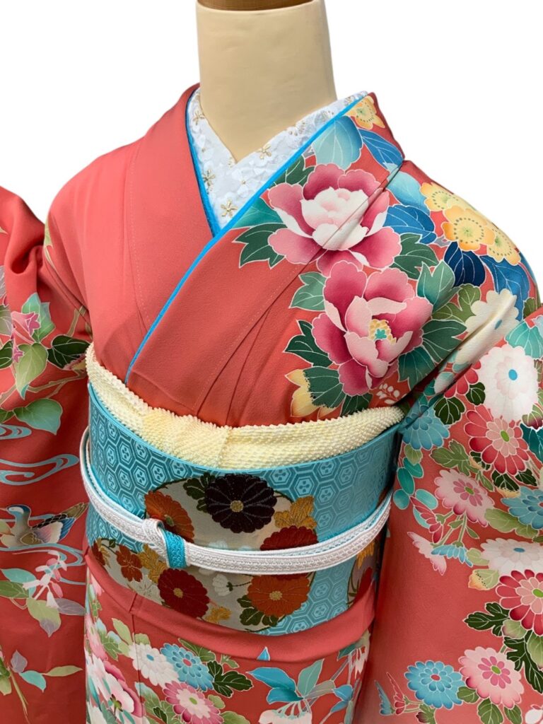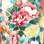 その上を華やかに彩る大輪の牡丹や菊が、晴れの日にふさわしい格調を演出します。