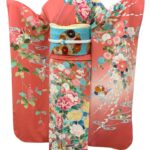 【サイズ】 身丈:158cm(背から) 袖丈:110cm 裄丈:66.5cm 帯長さ:439㎝ 帯幅:31㎝ 適応身長:153㎝~163㎝くらいまで