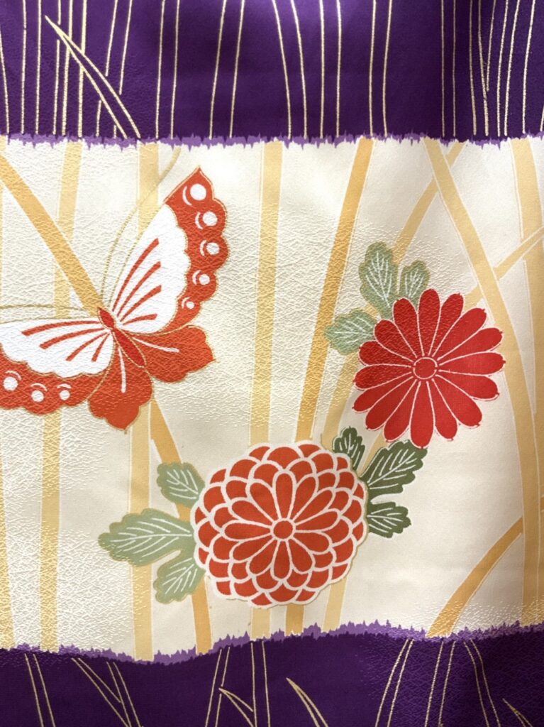 【サイズ】 身丈:168.5cm(背から) 袖丈:98cm 裄丈:67cm 帯長さ:442㎝ 帯幅:31㎝ 適応身長:165㎝くらいまで