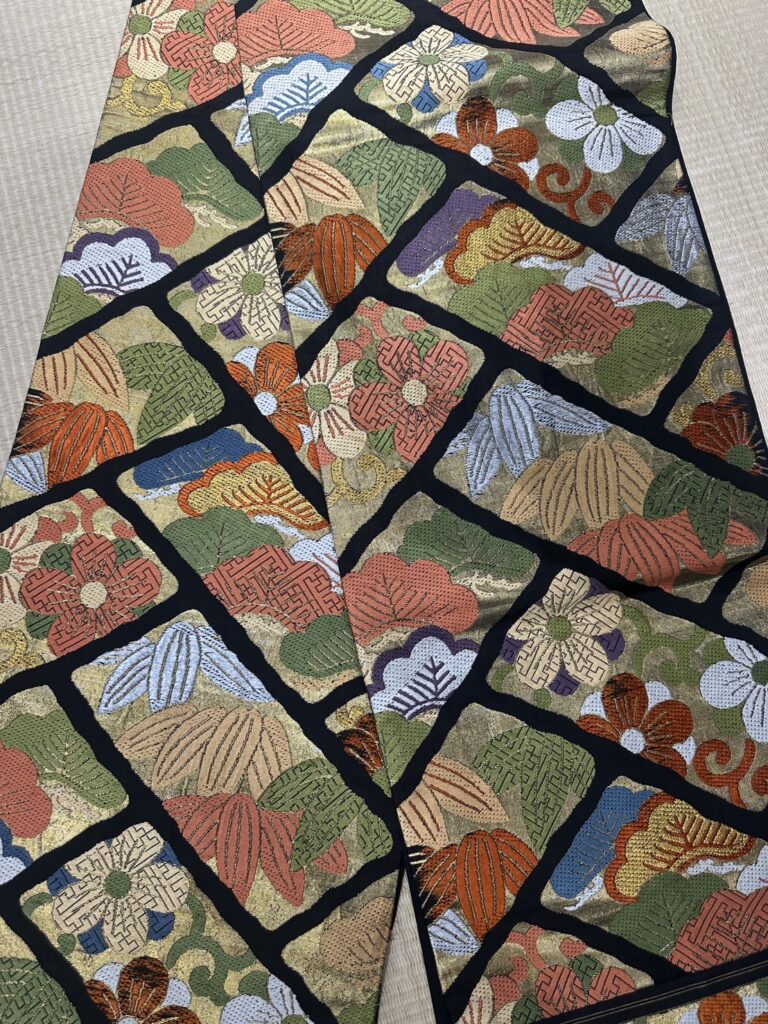 【サイズ】 身丈:154cm(背から) 袖丈:97cm 裄丈:66cm 帯長さ:448㎝ 帯幅:31.5㎝ 適応身長:158㎝くらいまで