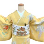 しっとりとした質感の絹に映えるクリームイエローの地色が上品な訪問着。