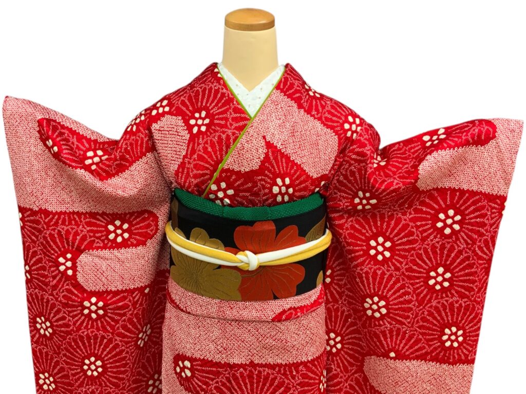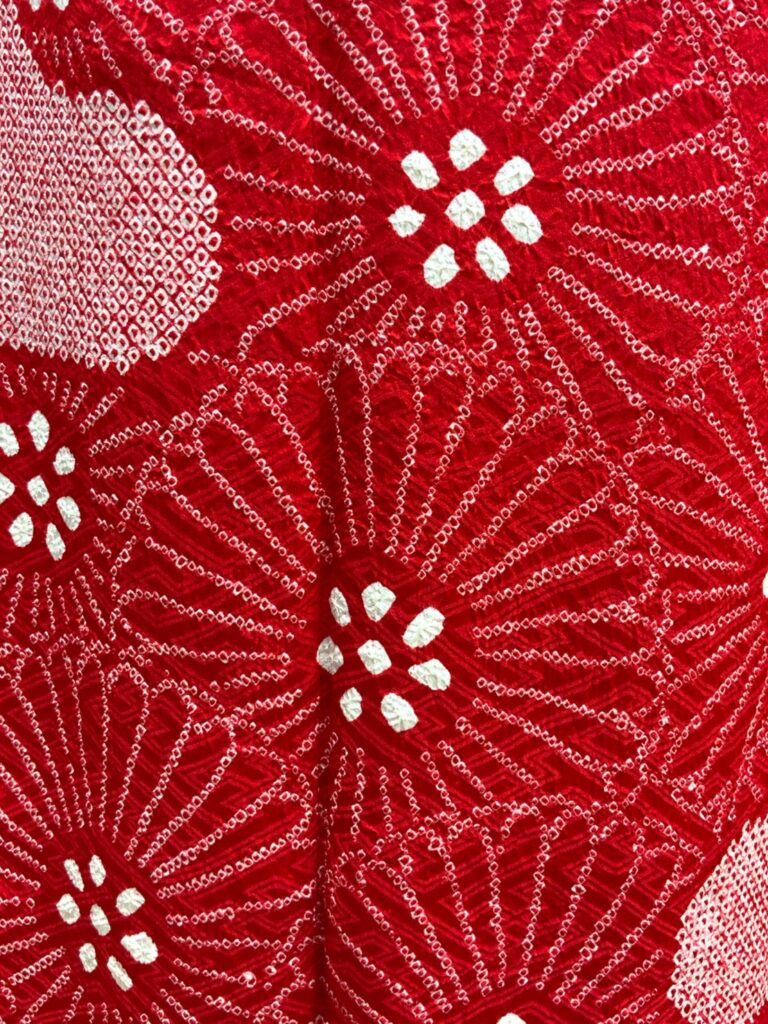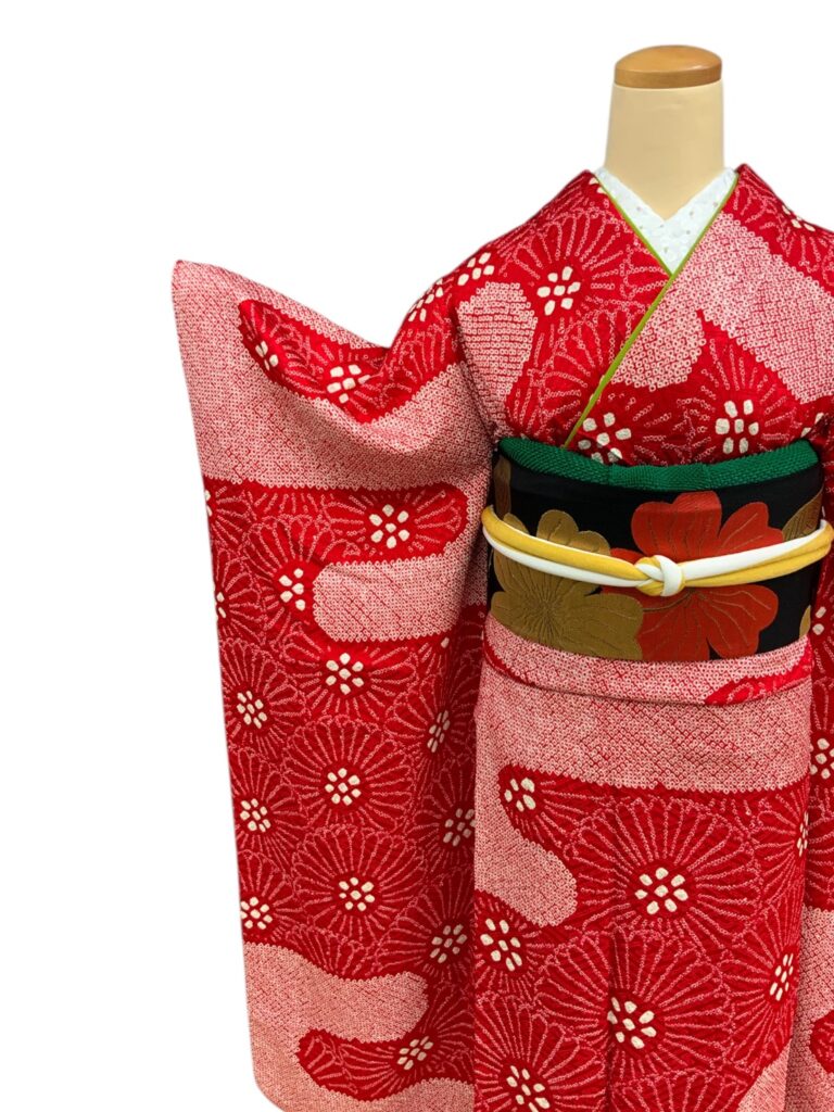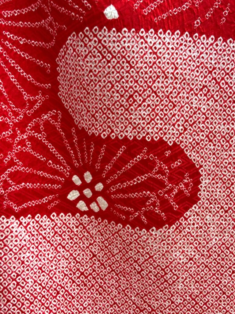 一面に広がる疋田絞りの文様が艶やかでありながら、