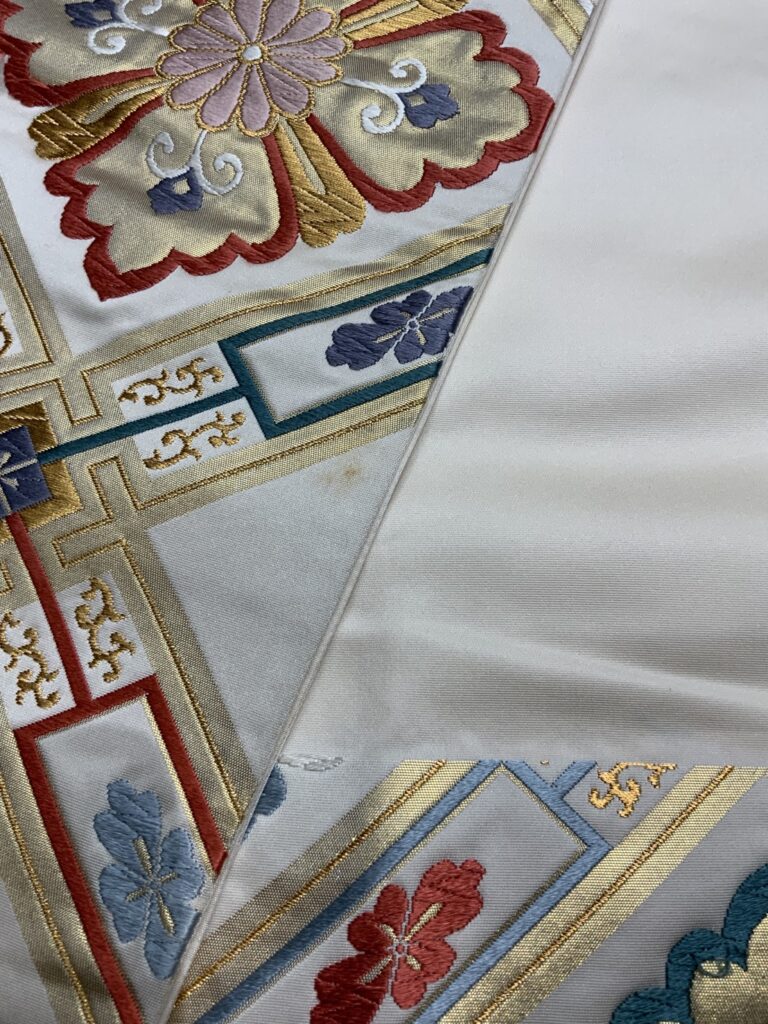 振袖★★★★☆ Bランク クリーニング済みです。 特筆する難はございません。 帯 ★★★☆☆ Cランク シミ画像参照 →当店の状態ランクについて