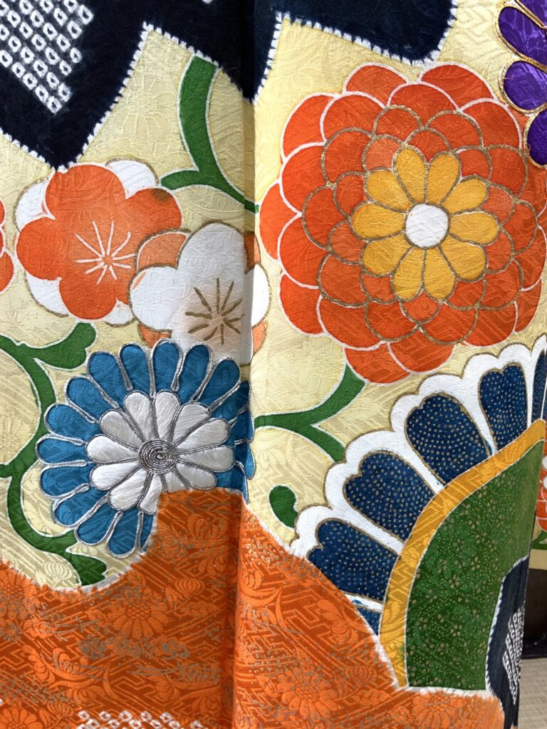 黒を基調とした大輪の菊文様に、