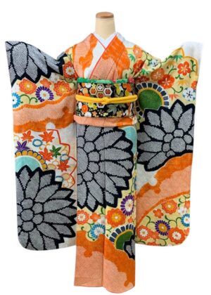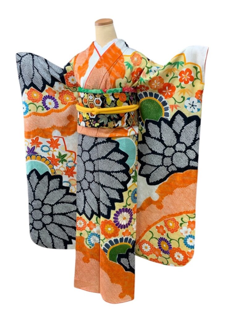 一目で印象に残る、存在感あふれるレトロ振袖です。
